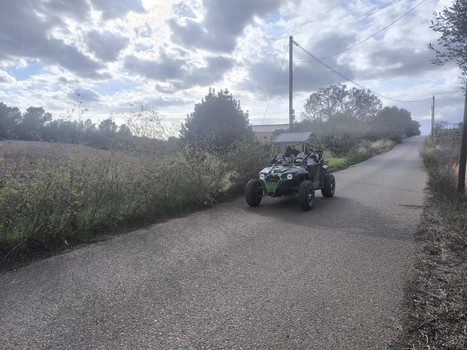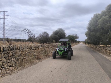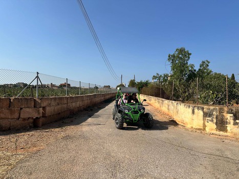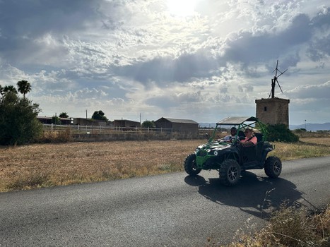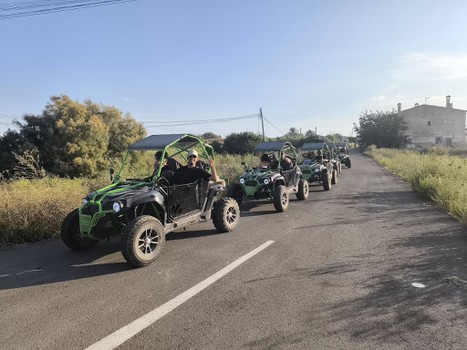 During this tour, we will explore the most rural areas of Llucmajor and S’Aranjassa, enjoying unique landscapes and quiet backroads. On the way back, we’ll drive along the coast of Playa de Palma, offering stunning sea views. The route lasts approximately one hour and includes a short stop to switch drivers and take some photos with the buggies.